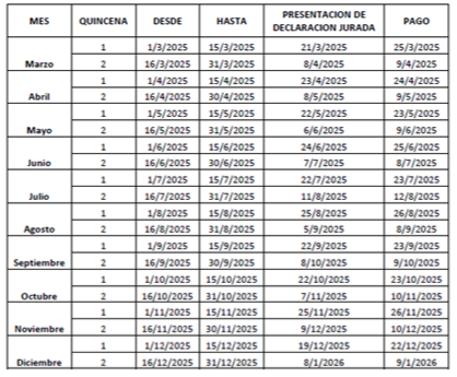 “A partir del 9 de marzo del año 2025 se reemplaza las disposiciones relacionadas con el régimen de percepción del Impuesto de Sellos para las operaciones de adquisición, modificación, trasferencia o extinción de derechos reales sobre automotores, moto vehículos y maquinarias que se efectúen en los Registros Seccionales del Automotor, Moto vehículos Y Registros de Maquinarias agrícolas, viales e industriales de la Provincia. Son agentes de Percepción los encargados o Interventores de Registros Seccionales de la Dirección Nacional de los Registros Seccionales de la Propiedad Automotor y de Créditos Prendarios, y Registros de Maquinarias Agrícolas, viales e industriales de la Provincia de Jujuy, por todos los actos, contratos y operaciones que se presenten en el Registro a cargo del agente designado y que se encuentren alcanzados por el impuesto de sellos. A efectos de la liquidación se deberán considerar los valores aprobados por la Dirección General de Rentas para el impuesto automotor y de sellos. Como constancia de la percepción realizada, los titulares del Registro Automotor entregarán el formulario F-0202 que se obtiene a través del nuevo programa aplicativo “Sistema Informático de Percepción de Sellos Automotor”. Se deberá presentar una declaración jurada quincenal cuyo vencimiento opera el quinto día hábil al de finalización de la quincena correspondiente; y el ingreso de las percepciones se realizará el día hábil siguiente al del vencimiento de la citada declaración jurada”.