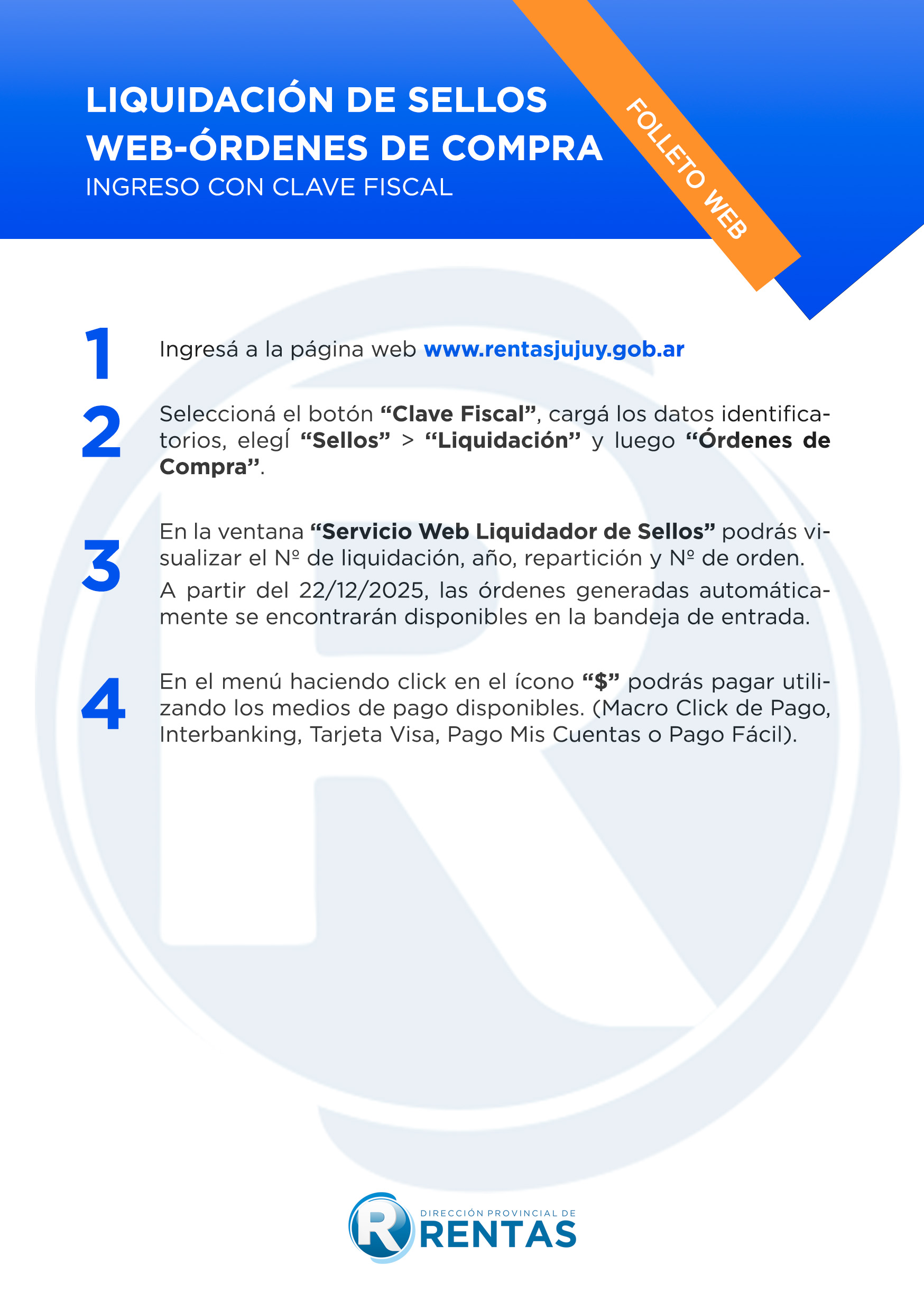 Tutorial: LIQUIDACIÓN DE SELLOS WEB – ÓRDENES DE COMPRA a partir del 22/12/2025.